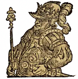![]() A fanciful illustration of Owain Gwynedd from the Historie of Cambria (1584)[1] | |