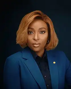 In March 2020, she became the President/Chief Executive Officer of Transcorp[15] after her appointment to the role, she became the youngest CEO on the Nigerian Stock Exchange and also the youngest and first female to occupy the position at Transcorp Group.[16][17][18]