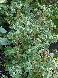 Propagation by seed is possible but is rarely used in practice.[4] Sexual propagation is complicated by several factors. First, like many other species in the genus Oxalis, oca flowers exhibit tristylous heterostyly and are consequently subject to auto-incompatibility.[25] Furthermore, on the rare occasion that oca plants do produce fruit, their loculicidal capsules dehisce spontaneously, making it difficult to harvest seed.[25] Oca flowers are pollinated by insects (e.g., genera Apis, Megachile, and Bombus).[25]