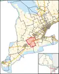 This riding gained territory from Brant during the 2012 electoral redistribution, consisting of that part of the County of Brant west of Etonia Road and East Quarter Townline Road.