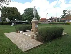 The Oxley war memorial to the fallen was opened in 1920[18] and moved in 1980. The firm of stonemasons which constructed this memorial was F. Williams & Co of Toowoomba, with the original cost being approximately £110. It is constructed of sandstone and marble and was built in honour of those from the district who died in World War I. This memorial is listed on the Queensland Heritage Register.[26][27]