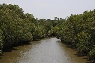The most common native marine species are the surf bream, sleepy cod, King threadfin, flathead gudgeon, dwarf flathead gudgeon, sea mullet and catfish (Arius gigas). Bull sharks have been found in the lower reaches.[14]
