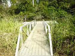 Oxley Creek is crossed by the Logan Motorway (27°38′25″S 152°59′54″E / 27.64026°S 152.99842°E) and the Ipswich Motorway (27°33′51″S 152°59′23″E / 27.56412°S 152.98985°E).[7] The creek is tidal upstream to the Ipswich Motorway crossing.[8] In the suburbs of Oxley, Corinda and Tennyson the lower reaches of the creek contain the Oxley Creek Canoe Trail and are bordered by houses, parks, a driving range and sports fields. In these areas it is heavily polluted. These winding areas for the creek's catchment are prone to flooding, especially if there is an overflow on the Rocklea flood plains from the tributary Stable Swamp Creek.[1]