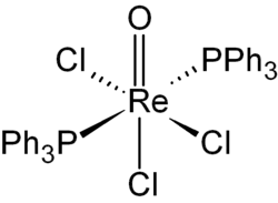 Oxotrichlorobis(triphenylphosphine)rhenium(V) is the chemical compound with the formula ReOCl3(PPh3)2. This yellow, air-stable solid is a precursor to a variety of other rhenium complexes.[1] In this diamagnetic compound, Re has an octahedral coordination environment with one oxo, three chloro and two mutually trans triphenylphosphine ligands. The oxidation state of rhenium is +5 and its configuration is d2.