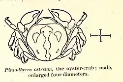- ^ a b Christensen, Aage MøLler; McDERMOTT, John J. (April 1958). "Life-History and Biology of the Oyster Crab, Pinnotheres ostreum Say". The Biological Bulletin. 114 (2): 146–179. doi:10.2307/1538845. ISSN 0006-3185. JSTOR 1538845.