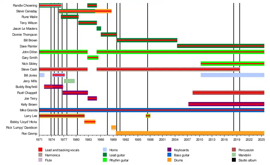 - Randle Chowning – lead guitar, harmonica, vocals (1972–1976, 1982–1983, 1984–1986)