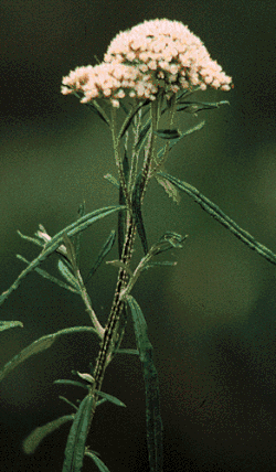 Generally, bract characters are key to distinguishing Cassinia from Ozothamnus, whereby the involucral bracts of Ozothamnus are straight or radiating and lacking paleae between florets, whilst Cassinia possess paleae and their involucral bracts are connivent.[6] O. ferrugineus is often mistaken for Cassinia aculeata, however, where C. aculeata's leaves are revolute or recurved, O. ferrugineus' leaves are flat or only slightly recurved. Furthermore, the hairs on O. ferrugineus' stem are arranged in neat parallel lines, whilst the stems of C. aculeata are more uniformly hairy.[2] O. ferrugineus can also be confused with Ozothamnus thyrsoideus which occurs in similar habitats but whose flowers are spread along branches rather than in terminal bunches.[7]