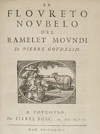Pèire Godolin, whose name is often Frenchified to Pierre Goudouli, or even Pierre Goudelin was born in 1580 in Toulouse where he died on the 10 September 1649, was an Occitan poet. He wrote in the Toulouse dialect.[1]