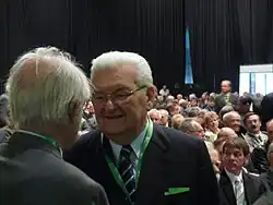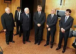 He was elected as a Member of Parliament from his party's Pest County Regional List during the 2006 parliamentary election.[35] Before the election's second round, Boross argued the left-liberal MSZP–SZDSZ governing coalition's advantage is unbeatable, therefore he received much criticism from the right-wing intellectuals.[39] He became a member of the National Security Committee following the election.[35] In the upcoming years the MDF gradually shifted to the left-wing under the leadership of Ibolya Dávid. Boross was strongly opposed to the nomination of Socialist ex-minister Lajos Bokros to the head of the MDF party list during the 2009 European Parliament election.[40] As a result, Boross resigned from his parliamentary seat on 31 January 2009.[35] Due to his conservative party's shift to the left, resulting in the expulsion of several prominent party members, Boross decided to break all ties with the present party leadership on 13 June 2009.[41] He finally left the party on 25 January 2010.[42]