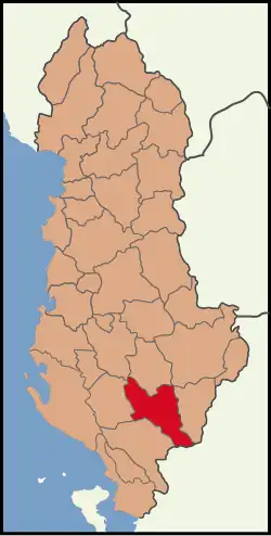 Përmet District (Albanian: Rrethi i Përmetit) was one of the 36 districts of Albania, which were dissolved in July 2000 and replaced by 12 newly created counties. It had a population of 25,837 in 2001, and an area of 929 km2 (359 sq mi).[1] Its area has an Aromanian minority.[2][3] It is in the south-east of the country, and its capital was the town of Përmet. Its territory is now part of Gjirokastër County: the municipalities of Përmet and Këlcyrë.