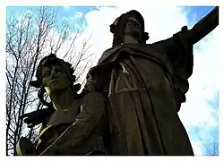 According to a legend, Přemysl was a free peasant of the village of Stadice who attracted the notice of Libuše, daughter of a certain Krok, who ruled over a large part of Bohemia.[3] Libuše succeeded her father, and her councillors demanded that she marry, but because Přemysl was not a nobleman she recounted a vision in which they would follow a horse let loose at a junction, and follow it to find her future husband, making it appear as if it was the will of fate not her own wish. Two versions of the legend exist, one in where they are to find a man ploughing a field with one broken sandal, and another in which the man would be sitting in the shade of a single tree, eating from an iron table (his plough). They did so and found Přemysl exactly as foretold.[2]