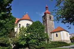 The oldest building in the town is a Gothic tower from 1497. Next to the tower is the Church of the Nativity of Saint John the Baptist, built in the Baroque style in 1753.[10]