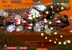 Certain enemies carry icon-based power-up items that can be picked to increase the aircraft's firepower such as bombs and missiles. Getting hit by enemy fire or colliding against solid stage obstacles will result in losing a live, as well as a penalty of decreasing the aircraft's firepower and once all lives are lost, the game is over unless players insert more credits into the arcade machine to continue playing. A new addition to the sequel is the hyper system, which increases the plane's overall power to its maximum status after continuing.[1][6] In addition to the single-player mode, the game also features a two-player cooperative multiplayer mode.