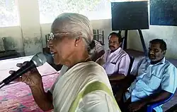 P. K. Medini is a revolutionary singer, musician, stage artist, one of the few living freedom fighters of India, a participant of the historical Punnapra-Vayalar uprising, a leader of Communist party of India and a renowned social activist of Kerala.[1][2]