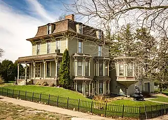 The P. P. Raymond House is a historic building located in Malcom, Iowa, United States. Raymond farmed outside of town from the time he arrived in Poweshiek County in 1856 until he moved into this house in 1874. He founded the town's first and only bank, P. P. Raymond and Sons. The family continued to live in the house until it was sold in 1904. It is a noteworthy example of the Second Empire style found in a small town.[2] It is a 2½-story frame structure that features a mansard roof with a concave slope, elaborate window hoods, window bays, and a turret. The house was listed on the National Register of Historic Places in 1985.[1]