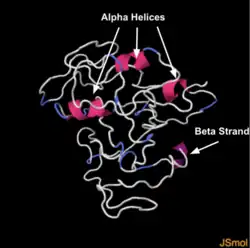 The structure of PANO1 is 82% disordered meaning the protein is able to move around easily.[12] The secondary structure reveals a beta strand at positions 3-9 as well as alpha helices incorporated throughout.[12]