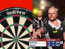 Throwing darts is implemented as a three-step procedure across all platforms. The first step is for the player to decide the general area of where they want to throw, determined using a set of keyboard keys, the Wii Remote pointer or an analog stick, depending on platform and control option. The second step is to determine how strongly the dart is to be thrown towards the chosen aiming area. The throwing power oscillates automatically on the Wii version as long as a "lock-on" button is held, while other platforms determine it manually based on how far the other analog stick is pulled or how long a key is held down. In 'Amateur' mode the power can be seen with a blue that fills a power meter; in 'Professional' mode this aid is not present and the power can be seen via the movement of the character's arm. A new difficulty added is 'Master' mode where extra precision is required.[6]