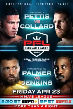 3. ^ Head, Simon. "Anthony Pettis vs. Clay Collard to headline PFL 2021 season opener". mmajunkie.usatoday.com. Retrieved 23 February 2021.