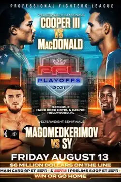 - ^ a b Newswire, MMA Fighting (2021-07-27). "PFL announces full card for first playoff event headlined by Rory MacDonald vs. Ray Cooper III on Aug. 13". MMA Fighting. Retrieved 2021-07-28.