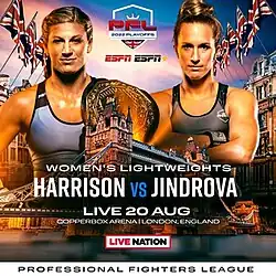 The PFL 9 mixed martial arts event for the 2022 season of the Professional Fighters League was held on August 20, 2022, at the Copper Box Arena in London, England. This was the start of the playoffs for the Women's Lightweight and Featherweight divisions.[1][2][3]