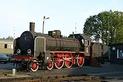 During World War II all the locomotives were captured by the Germans or Soviets and most were pressed into the German Railways. After the war, along with new war reparations, Poland received 429 locomotives P 8 (numbers Ok1-1 to 429), what made it by far the most numerous passenger locomotive in the country.[1] They were used until the late 1970s - last locomotive was withdrawn from line service in 1981.[1] A few engines were preserved, including Ok1-359 (see the photograph), which is stabled at the Wolsztyn museum.