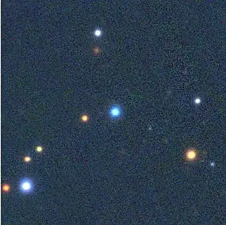 PKS 2255−282 is a blazar located in the constellation of Piscis Austrinus. This is a low-polarized quasar at the redshift of 0.926,[1][2] first discovered in 1975 by astronomers via a spectroscopic observation.[3] The radio spectrum of this source appears as flat, making it as a flat-spectrum quasar[4] but also a Gigahertz Peaked Spectrum source (GPS) with turnover frequency between 22 and 37 GHz.[5]