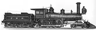 The Pennsylvania Railroad's steam locomotive class D3 (formerly Class C, pre-1895) comprised sixty-seven 4-4-0 locomotives intended for general passenger and freight service, constructed at the railroad's own Altoona Works (now owned by Norfolk Southern) during 1869–1881.[2] They were the third standardized class of locomotives on the railroad and the most numerous of the early standard types; they shared many parts with other standard classes.[3]