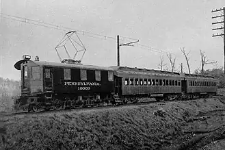Pennsylvania Railroad's Odd D #10003 was an experimental electric locomotive built in 1907 by Baldwin and Westinghouse.[1] It had a 4-4-0 wheel arrangement in the Whyte notation, or 2-B in the AAR scheme. On the PRR, class D was assigned to 4-4-0 locomotives. Production classes of locomotive were assigned a number after the letter, but one-off locomotives were simply designated "Odd".