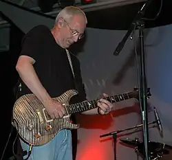 Paul Reed Smith (born February 18, 1956) built his first stringed instrument, an electric bass, in 1972 while a student at Bowie High School.[2] After graduating, Smith briefly attended St. Mary's College of Maryland,[3] where he completed his first electric guitar at the age of 19. The college awarded Smith four credits for the guitar, which was deemed "of professional quality."[4] Smith dropped out of college to open his own repair and luthier shop in Annapolis, from which he and several employees built on average one guitar per month. In 1976, Smith built a custom guitar for Peter Frampton and took it to several concerts, where he knocked on backstage doors to try and show it to guitarists. Ted Nugent bought an early guitar from Smith. Al Dimeola ordered a 12-string model. Howard Leese bought Smith's first maple-topped guitar, the Golden Eagle. Carlos Santana requested a guitar similar to the one owned by Leese, and it was delivered in 1980.[4]