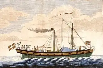 Caledonia was a paddle steamer built in Scotland in 1815. The ship was bought by a Danish businessman in 1819 and it became the first steamship registered in Denmark. It spent most of its active years in Denmark operating between the cities of Copenhagen and Kiel. Broken up around 1843.