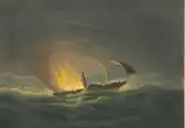 ![]() Paddle steamer Madagascar consumed by fire during a typhoon at the entrance to the Formosa Channel. From an engraving by E. Duncan, based on a painting by W. J. Huggins after an original sketch by Capt. Dicey.
