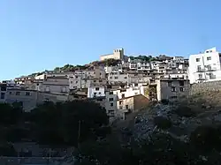 The Montsagre de Paüls mountain range rises above the town.