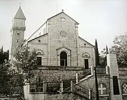 After several requests to return to Herzegovina, Buconjić's appeals were accepted.[3] He lectured in Rome until 20 December 1866, when he returned to the Franciscan friary in Široki Brijeg to teach dogma and morals.[3] In 1871, he gained the highest Franciscan academic title of jubilee lecturer.[11] The Custody's administration decided already in 1865 to establish new parishes, including the one in Buconjić's home village, Drinovci. Buconjić helped them find a lot to construct a new parochial residence. In 1871, Drinovci became at first a chaplaincy, while Buconjić was named its chaplain, and in 1873, it was elevated to the status of a parish, with Buconjić as its first parish priest.[12][13] While in Drinovci, Buconjić finished the construction of the parochial residence[11] and helped to construct a parochial church.[14] Buconjić was elected Custos of the Franciscan Custody of Herzegovina on 31 May 1874 for a three-year term.[11][15]