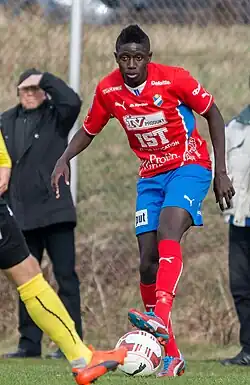 Konate then appeared three times as an unused substitute in the club's matches in the Svenska Cupen.[6] He made his Allsvenskan debut for Malmö FF in an away fixture against AIK at Friends Arena on 17 April 2013, coming on as an 85th-minute substitute, as the club won 2–0.[7] A week later on 3 May 2013, Konate made his first start for Malmö FF and played 62 minutes before being substituted, as the club drew 1–1 against IFK Norrköping.[8] He then helped set up one of Malmö FF's goals against Sävedalens in the Round 2 of Svenska Cupen, in a 6–0 win.[9] Konate played a total of six matches during his debut season for the club, most of these matches was as an oncoming substitute, coming on for Ricardinho.[10] His contributions saw Malmö FF win the league after beating IF Elfsborg 2–0 on 28 October 2013.[11]