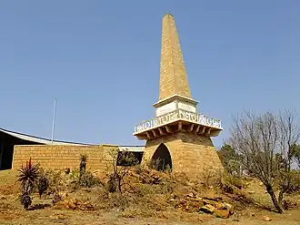 Land was donated to the government in 1886, up to 100 m from the site of the cairn, from the farm owned by a M.W. Pretorius.[3]: 182 He had lease parts of his farm to gold prospectors who were searching for the continuation of the Main Reef of the Witwatersrand Gold Rush, which had its origins to the east in Johannesburg and did not want this sacred memorial site disturbed.[3]: 182 In 1889, the local Landrost Human, proposed to the South African Republic that a formal monument, in the form of an obelisk, be built on the cairn site.[3]: 187