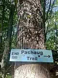 The Pachaug Trail is a Blue-Blazed hiking trail and extends from Breakneck Road near the intersection with Lee Road in Griswold, Connecticut, to northern Spaulding Road in Plainfield. Most of the Pachaug Trail is on state land within the Pachaug State Forest. It connects to public recreation areas maintained by the Connecticut Department of Environmental Protection at Green Falls Pond and Phillips Pond in Pachaug State Forest.[1]