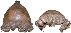 - ^ Longrich, N.R.; Sankey, J.; Tanke, D. (2010). "Texacephale langstoni, a new genus of pachycephalosaurid (Dinosauria: Ornithischia) from the upper Campanian Aguja Formation, southern Texas, USA". Cretaceous Research. 31 (2): 274–284. Bibcode:2010CrRes..31..274L. doi:10.1016/j.cretres.2009.12.002.