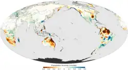 Winter precipitation is higher than usual in the Alaska Coast Range, Mexico and the Southwestern United States but reduced over Canada, Eastern Siberia and Australia[18][19]