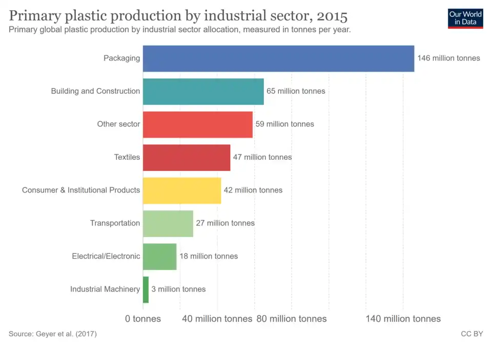 According to the United States Environmental Protection Agency (EPA), defined containers and packaging as products that are assumed to be discarded the same year the products they contain are purchased.[5] The majority of the solid waste are packaging products, estimating to be about 77.9 million tons of generation in 2015 (29.7 percent of total generation).[5] Packaging can come in all shapes and forms ranging from Amazon boxes to soda cans and are used to store, transport, contain, and protect goods to keep customer satisfaction. The type of packaging materials including glass, aluminum, steel, paper, cardboard, plastic, wood, and other miscellaneous packaging.[5] Packaging waste is a dominant contributor in today's world and responsible for half of the waste in the globe.[4]