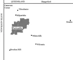 Packsaddle, New South Wales is a remote township and civil parish of Evelyn County, New South Wales within the Far West Region. Its population is 73.[1]