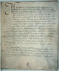 In addition to his own unique pacta conventa, each king-elect was required to sign the Henrician Articles, a set of privileges named after the first king who signed them, Henry of Poland.[2] Unlike the pacta conventa, the Henrician Articles were constant and unchanging.[2] The distinction between the two documents gradually faded away over successive elections. Together, those two documents spelled out most of the critical details of the Commonwealth political system.[2]