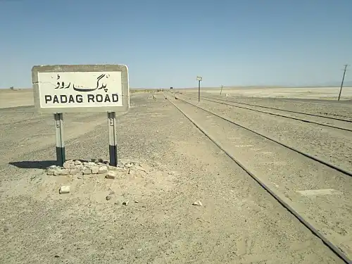 Padag Road Railway Station (Urdu: پڈاگ سڑک اسٹیشن, Balochi: پڈاگ سڑک اسٹیشن) is located in Pakistan.