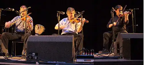 Paddy Glackin was born on 5 August 1954 in Clontarf, Dublin.[1] His father, Tom Glackin, was an officer with the Garda Síochána in Dublin and a notable fiddle player who instilled in Paddy a deep interest and love of the music of his native County Donegal, and taught him and his brothers Kevin and Seamus to play the instrument.[2][3] As a result of his father's influence, Paddy was playing fiddle in the 'Donegal style' by the age of six.[1][3] During his primary school years, he took classical violin lessons at the College of Music in Chatham Row in Dublin,[2] which gave him an important technical grounding in music and helped develop his formidable technique.[3] His playing style, however, was developed more informally at home, where his father organized regular Wednesday afternoon music sessions with many musicians, including Seamus Carroll, Larry Redigan and Frank O'Higgins.[3] Seamus Carroll was particularly encouraging and helpful, teaching Paddy the techniques of Sligo-style fiddling.[3]