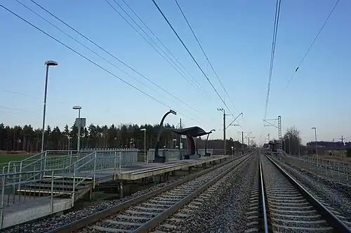 Padula railway station (Estonian: Padula raudteepeatus) is a railway station in Saue parish in Harju County in northern Estonia. It is located on the border between the small borough of Laagri and the village of Koidu.[1] The stop is named after the Padula inn and farm that was once located in the area.[2]
