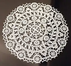 Pag lace (Croatian: Paška čipka) is a distinct form of lacework originating from Pag, an island in Croatia. Creating Pag lace involves using a needle, thread, and a firm round or square pillow as a backing.