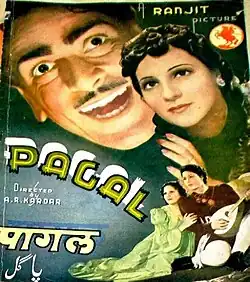 Pagal is a 1940 Indian Hindi-language film. It was the fourth highest grossing Indian film of 1940.[1] The psycho-social melodrama was directed by A. R. Kardar for Ranjit Movietone.[2] Kardar also wrote the dialogues and story (with Kamal Amrohi) for the film. Khemchand Prakash composed the music with lyrics written by D. N. Madhok.[3] The film's protagonist was Prithviraj Kapoor playing a doctor with psychological problems, working in a "lunatic asylum".[4] The rest of the cast included Trilok Kapoor, Madhuri, Sitara Devi, Noor Mohammed Charlie, Khatoon, and Sunalini Devi.[5]