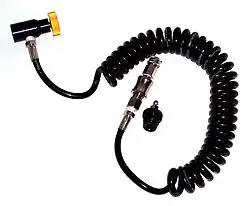 For situations where the marker's bolt or barrel can be quickly removed, a "cable squeegee" may be used. A cable squeegee is simply one or more rubber disks mounted perpendicular to a flexible metal cable (usually with a plastic jacket to avoid marring the barrel's surface). The end opposite the disc(s) (the "pull end") is inserted into the rear of the bolt chamber or the chamber side of the barrel, as appropriate, and fed through until the pull end protrudes from the front of the barrel. The squeegee is then pulled through the breech and/or barrel. Some designs incorporate a swab of an absorbent material that picks up anything the disc(s) leave behind. Because they require removal of the bolt or barrel, they are slower to use than a rod squeegee; however, being composed mainly of a flexible cable, they can be easily coiled up into a very compact size.