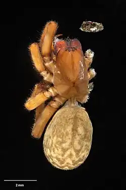 - ^ Wheeler, Ward C.; Coddington, Jonathan A.; Crowley, Louise M.; Dimitrov, Dimitar; Goloboff, Pablo A.; Griswold, Charles Edward; Hormiga, Gustavo; Prendini, Lorenzo; Ramírez, Martín J.; Sierwald, Petra; Almeida-Silva, Lina; Alvarez-Padilla, Fernando; Arnedo, Miquel A.; Silva, Ligia R. Benavides; Benjamin, Suresh P. (2016-12-12). "The spider tree of life: phylogeny of Araneae based on target-gene analyses from an extensive taxon sampling". Cladistics. 33 (6): 574–616. doi:10.1111/CLA.12182.
