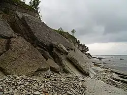 A limestone cliff borders the northern coast of both islands and also the eastern coast of Väike-Pakri. Part of the Baltic Klint, it rises up to 4 m on Suur-Pakri and up to 13 m on Väike-Pakri.[1] Both islands are essentially part of a larger limestone plateau in Northern Estonia.[3]