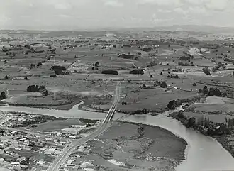 ![]() View of the newly constructed Ti Rakau Bridge over the Pakuranga Creek in 1973 | |||